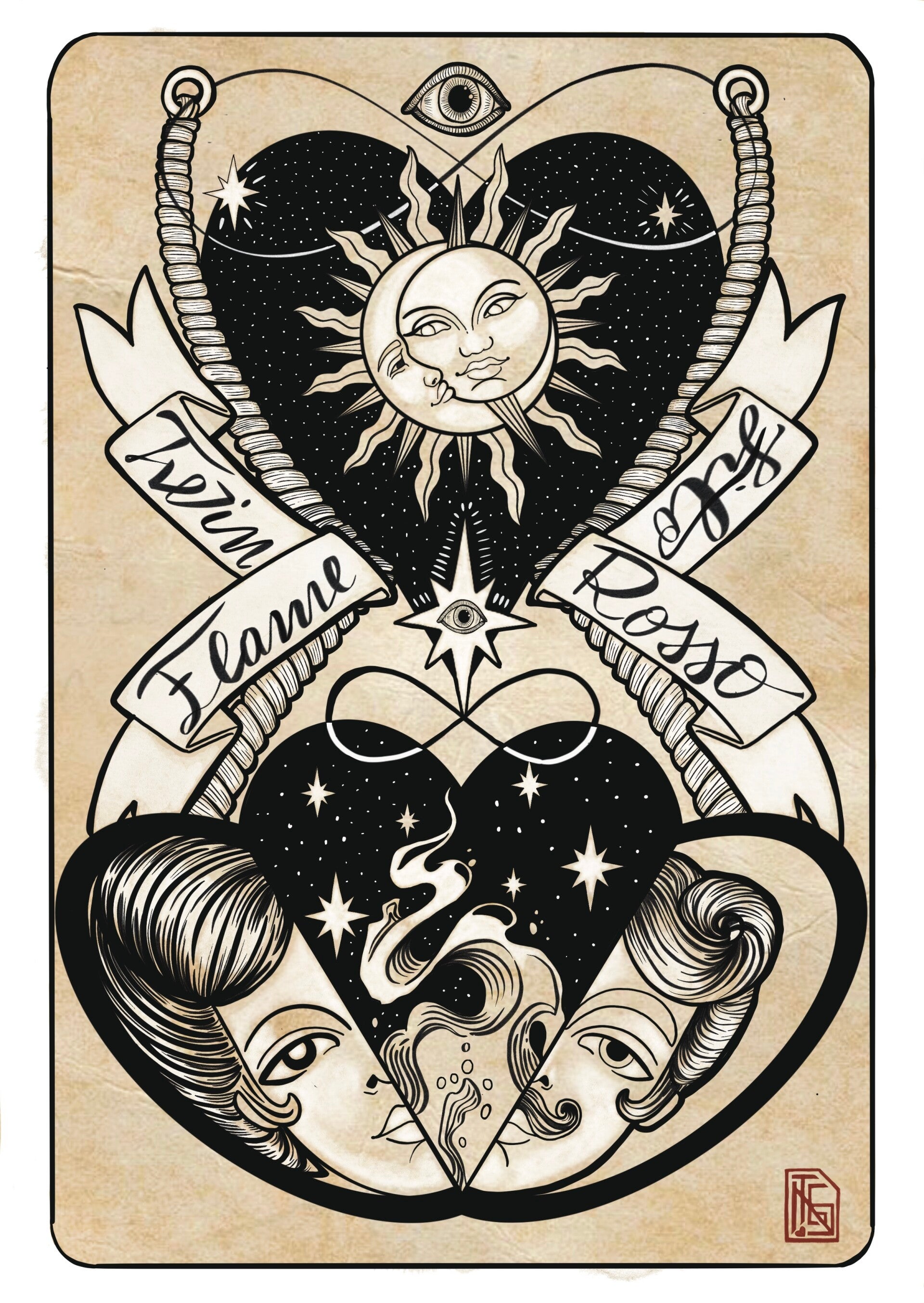 Dietro ogni illustrazione si cela un meticoloso lavoro di introspezione personale. Utilizziamo simboli universali, personaggi noti dalla cultura, dai tarocchi agli artisti esistenti o figure letterarie, che fungono da archetipi per esplorare e raccontare storie profonde, rendendo ogni pezzo straordinariamente speciale e intriso di significato.